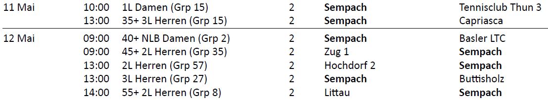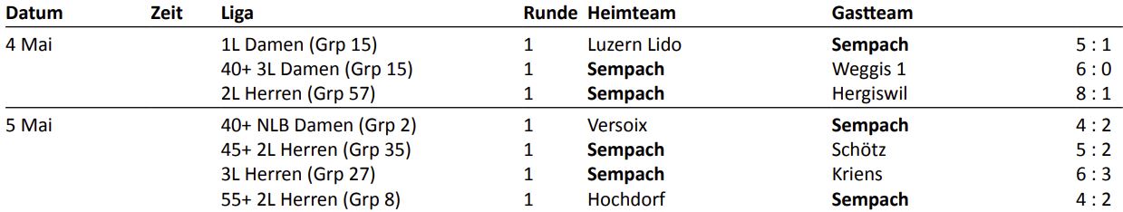 In der ersten Interclub-Runde vom 4./5. Mai 2024 gab es 4 Siege und 3 Niederlagen für die Sempacher-Teams: